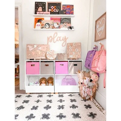 - Features two square cubbies and one spacious, lower storage compartment, creating the perfect “catch-all” spot for organizing books, toys, games and more