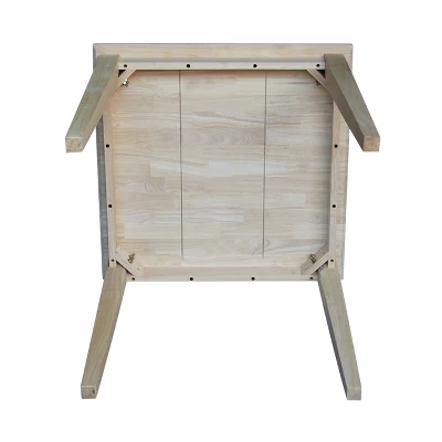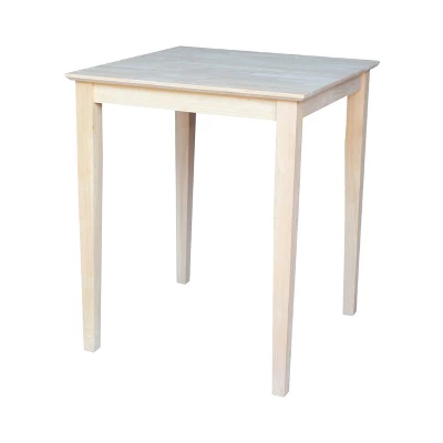 For those who appreciate high quality wood furniture with a traditional and elegant look. International Concepts home furnishings will complement any décor. This Dining Table is made of solid wood ensuring years of use. The table features a butcher block top and four shaker styled legs for maximum support. It is unfinished, allowing you to match any decor. The square table measures 30″ W x 30″ D, and is available in standard dining height, counter height, and bar height options. The standard dining height table is for use with dining chairs and is 30″ H. The counter height table is used with counter height stools and is 36″ H. The bar height table is 42″ H and is used with bar stools. This Solid Wood table ships ready to assemble.