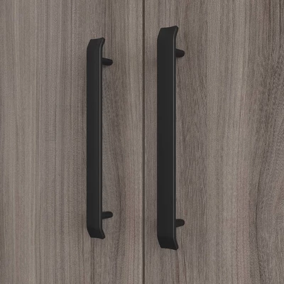 collection. This 2-door storage cabinet has a durable, 1″ thick top – ideal for a lamp, your to-do list, photos of your family, your phone charger and more. The melamine top surface is heat, stain, and scratch resistant with impact resistant, high-grade thermoplastic edges —durable for the toughest jobs. A large adjustable shelf behind the door of this small storage cabinet allows versatile options to stash even the largest books or smallest office accessories. This storage cabinet with doors is finished on all sides for versatile placement in any area of your office—it will look polished and refined from every angle. Adjustable levelers allow this low storage cabinet to perfectly align with other items in the office suite and provide a high level of configurability. The Hudson Elm finish of this commercial storage cabinet makes it as stylish and design forward as it is functional.