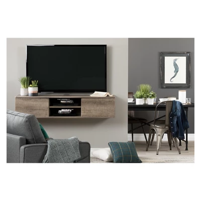 Expand room in your living area while adding a traditional touch to your decor with the Agora Wall-Mounted Media Console from South Shore. This wall-mounted TV stand comes with three compartments, each sporting two shelves to let you stack and display everything from gadgets to your favorite books to decorative items. It also comes with a sliding door to allow easier access to its interior storage space. This compact media console lets you free up some space while still offering ample storage to keep your living room nice and organized.