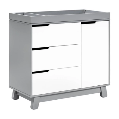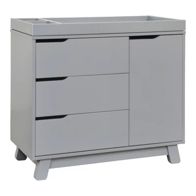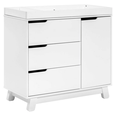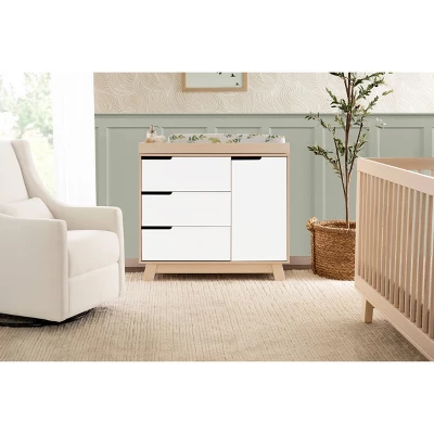 Get more from your nursery furniture with the versatile Hudson Changer Dresser. Combining a changing table, three drawer dresser, and storage cabinet all in one solid and practical package, the Hudson Changer Dresser is a modern space-saving convenience. Complementing the mid-century modern-inspired Hudson 3-in-1 Convertible Crib, the dresser comes in three chic finishes including two new takes on two-tone for the nursery. Truly built for baby, the removable changer tray’s raised sides help keep your little one safe, and an anti-tip kit is included for further security. Keep baby’s clothes and necessities organized in the smooth-opening drawers, while stop mechanisms prevent them from being pulled all of the way out. The storage cabinet closes gently and includes an adjustable shelf, perfect for keeping diapers and wipes handy.