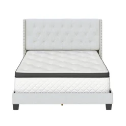 Maya Wingback Button Tufted Linen Upholstered Platform Bed With Nailhead Trim – Eco Dream
