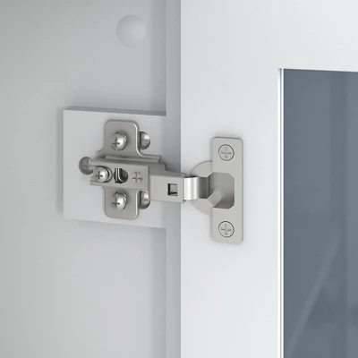 The Bush Furniture Broadview Bar Cabinet with Wine Storage brings a traditional look with contemporary flair into your dining room, kitchen or den. Organize your favorite beverages and accessories in style. With a fashionable and functional design, the 2 door storage cabinet works equally well as a wine, liquor or coffee bar without taking up too much room. The doors feature glass accents and conceal 3 stationary and 4 adjustable shelves. Enjoy a smooth close as the doors feature self-closing Euro-style hinges. A wine glass rack offers 3 rows of hanging stemware storage for easy access to your stemmed glasses. Optional wine racks hold up to 9 bottles. Elegant Satin Chrome hardware and a sturdy post leg design complete the beautiful Bar Cabinet, finished in White to complement any room in your home. Backed by a Bush Furniture 1 Year Manufacturer’s Warranty.