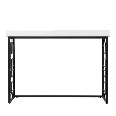 Add a modern element to your home décor with the Aiden Lane Cobepers Contemporary Console Table. A spacious glass tabletop provides plenty of room to display knickknacks or hold your favorite books, while the geometric frame design creates a unique feel. Tuck this long console table behind your living room sofa to keep the TV remote and your drink close at hand, or place in your entryway for a convenient place to collect wallets and keys. Contemporary styling comes home with this two-tone sofa table.
