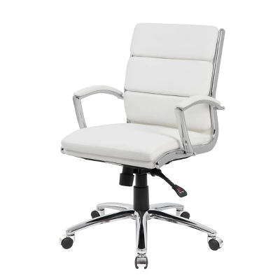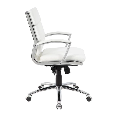 The CaressoftPlus executive guest chair in black with the metal chrome finish is as comfortable as it is handsome. This is the perfect guest chair for most any room or office and adds a pop of modernism to any room. The chair is made with a material called CaressoftPlus which is a trademarked vinyl that is an ultra-soft, breathable upholstery that looks & feels like leather, but more durable & easy to clean. It has been designed with a sturdy chrome cantilever base and has a weight capacity of 275 lbs.