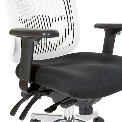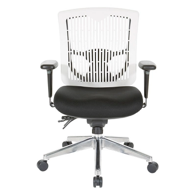 Work in comfort and style in the new Pro-Line II® Multi-Function Chair. Perfect for workers who spend extended periods of time at their work stations, this intelligently designed chair provides comfort and support to both your body and mind. The contoured plastic back with built in lumbar support, and high quality foam seat affords for hours of cozy seating, minimizing fatigue and alleviating pressure on the spine. The one touch pneumatic seating adjustments allow you to elevate to the perfect height while the deluxe Multi-function control with forward tilt lets you adjust the seat and back angles to help reduce fatigue in your back and thighs. Complete with height adjustable arms with soft PU pads and a Chrome base with dual wheel carpet casters that provide for effortless mobility across tile and carpet floors alike.