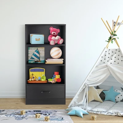 Compartmentalized design: includes 3 open shelves and a drawer for personal items