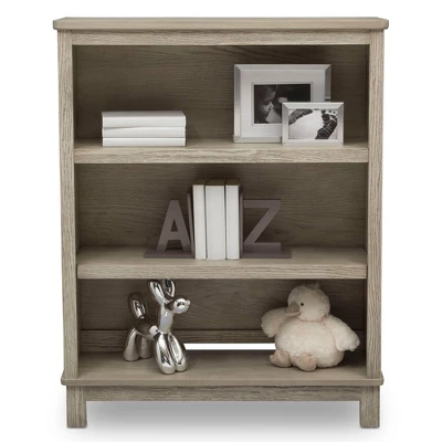 Infuse your nursery with the rustic-style Farmhouse Bookcase from Delta Children. This versatile piece features two shelves (one permanent, one removable) to display your baby’s books, keepsakes, and more. Available in Textured Limestone, Textured White, Textured Midnight Gray. This Bookcase coordinates with other items in the Delta Children Farmhouse Collection. Due to varying wood grains and variations in the hand-applied finish, product might appear slightly different than those shown on site.