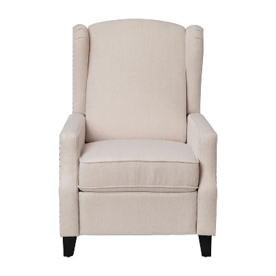 If you’re looking to refresh your living room or bedroom and need a comfortable place to sit, look no further. Offering a combination of traditional wingback styling with modern details, this recliner can suit any space or décor. Generously padded and upholstered with easy to clean fabric in gray with nailhead accent trim, this chair is equally stylish and comfortable. The easy, push back design means no fussing with buttons or levers and the pop out footrest allows you to truly put your feet up and relax with your favorite TV show or a good book. Assembles in less than 10 minutes so you can enjoy the tranquility of your newly updated space sooner. Spot clean when needed with water and a neutral detergent for long-lasting great looks. Additional Features: Spot Clean with Neutral Detergent and Water