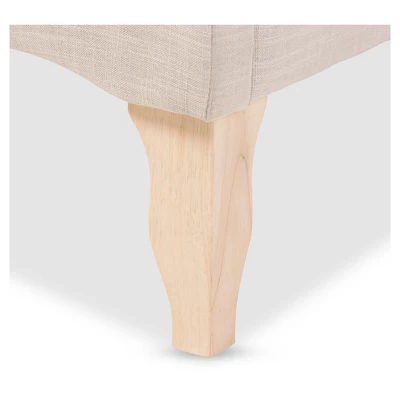 The Fannie French style full size beige linen fabric platform bed combines all the beauty and elegance. Perfectly formed and carefully crafted, the beauty of this French style platform bed is combined with a stylish beige mix linen fabric to create a bed that is sure to be a spectacular center piece in any bedroom. Create a warm and opulent look in your bedroom with this classic design which will work well in either a period house or city center apartment. Constructed of solid rubberwood and plywood, the Fannie features graceful scrolled headboard and curvy-styled footboard. Eye-catching and stunning, the natural finishing legs inherit the scroll design and showcase the look of a classic yet contemporary French style upholstered bed. Padded headboard in a soft, tactile and durable fabric consisting of a mix of linen, polyester and viscose provides a cozy appeal to the bed, allowing you to prop up and read while remaining stylish in its framing. The bed has a high quality build and benefits from a strong sprung slatted wooden base that acts as a flexible and supportive platform for your mattress. The Fannie, featuring French modern classic style will immensely modernize your bedroom. Made in Malaysia, the full size platform bed requires assembly.