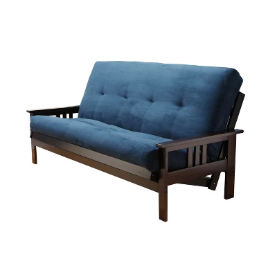The Dual Comfort Chicago Futon is a classic hardwood frame with mission style arms. This unique and versatile Full Size Coil Spring Mattress Futon Sofa easily converts to a Bed. This multifunctional piece of furniture can find a home in just about any type of room.