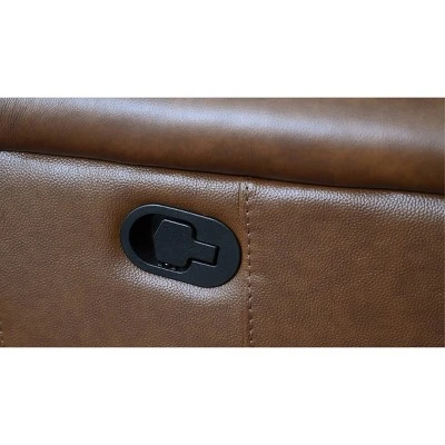 Ideal for compact spaces or to extend the seating comfort of a larger group, the Gilbert Leather Manual Reclining Loveseat delivers exceptional traditional style and quality construction perfect for the timeless feel of a living room or media space. Wrapped in rich brown top-grain leather and leather match, it adds a luxuriously smooth feel. Solid hardwoods with corner-blocked joinery provide durability for a long-lasting life, and thick padding is channeled in all the right places to provide tailored body support. Recline with a manual steel reclining mechanism and take advantage of a handy console to organize remotes and essentials.
