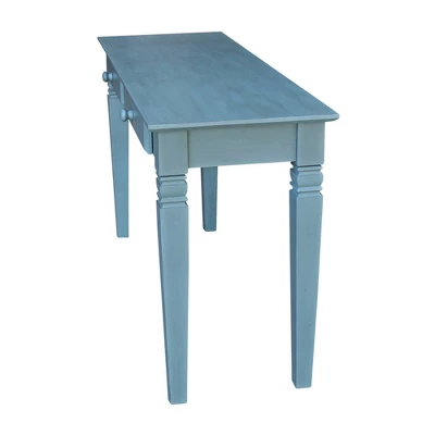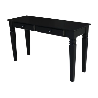 International Concepts home furniture is for those who appreciate high quality, wood furniture with a traditional and elegant look. This piece will beautifully complement any decor in your home. The Java Console table is made of solid hardwood with a butcher block surface. It measures 52″W x 18″D x 30″H. The table features two drawers. The inside of each drawer measures 14.6″W x 13″D x 1.9″H. The distance from the bottom of the apron to the floor is 25.3″. The console table ships ready to assemble.