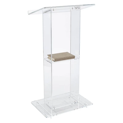 The Model #401S is a contemporary-style, transparent acrylic lectern with a convenient 14″ x 8″ shelf. Its structure is composed entirely of 1/2” and 3/8” thick acrylic Plexiglas including a rectangular column and base plus a broad 23.5″ x 24″ reading surface with book stop. Perfect in a worship setting or any environment that calls for an attractive, lightweight and truly unique fixture that will convey a sense of clarity and closeness between the elucidating speaker and audience. Ships ready for easy assembly.