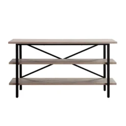Triple Shelf Metal X-Accent TV Stand With Gray Oak Wood Shelves – Henn&Hart
