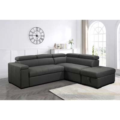 The 3-piece Mateo Stain Resistant Fabric Sectional by Abbyson is a functional and versatile piece that would be great in any living space. Available in dark gray stain-resistant upholstery and made of solid wood construction, this sectional is an excellent fit for any family or for those who like to entertain. The ottoman extends the length of your sectional while also serving as an extra storage compartment for your home.