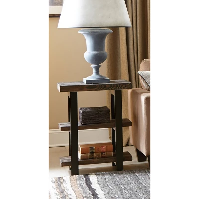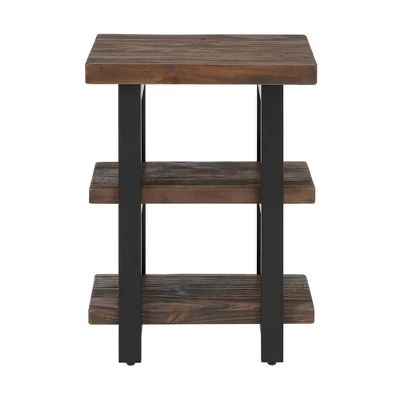 Pomona 2-Shelf End Table will add warmth to any décor. The rustic natural finish and design provide a stylish element to your room. Natural wood variations such as cracks, knots add to the piece’s character. The exquisite workmanship of solid wood tops with metal legs create a piece that will last for years to come.
