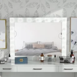 2pc Grayde 3 Drawer Vanity Table And Mirror Set With Bulbs And USB Ports Luminous White – MiBasics