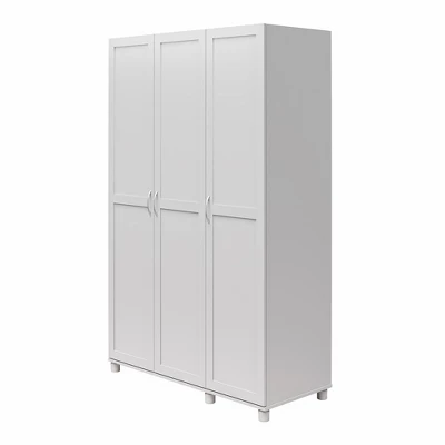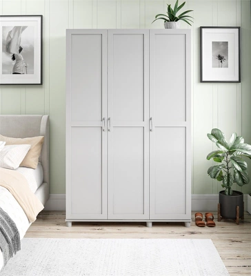 Streamline your morning routine and organize your closets with the RealRooms Basin Framed 3 Door Wardrobe with Hanging Rod and Adjustable Shelving. Open any one of the 3 doors to reveal massive amounts of storage space with room for customization. Hang, stack and store your way to a more conducive closet experience. Behind the double doors, you’ll find both upper and lower shelving for shoes and hats, as well as a clothing rod for ample hanging space. The single door opens to another 4 roomy shelves, 1 fixed, and 3 adjustable, for items tall to small. Made from engineered wood and available in multiple neutral finishes, the Basin Framed 3 Door Wardrobe ships flat to your door in 2 boxes. Two adults are recommended to assemble. Once assembled, the Wardrobe measures to be 47.36″W x 19.69″D x 74.27″H.