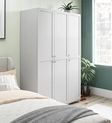 - Organize your closet with the RealRooms Basin Framed 3 Door Wardrobe