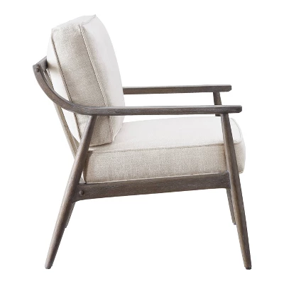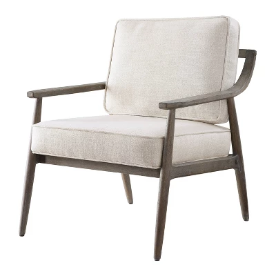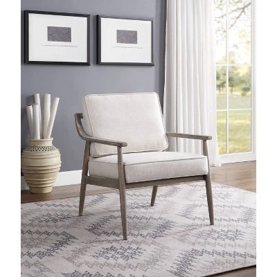 Give your room an instant upgrade with the addition of the Samuel Armchair from OSP Home Furnishings™. This gorgeous Armchair features Mid-century Modern styling and wears a rustic finish over its solid-wood frame. The chair legs include floor glides. An open-back silhouette and plush cushions give this chair another level of design appeal.