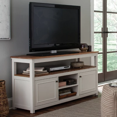 Savannah collection offers modern cottage styling; with its wood top and white painted legs it offers fresh style to your living space. Savannah includes end tables, console tables and media/storage pieces. You can design your coastal, cottage, or farmhouse living room in your home. This media cabinet is the perfect piece to help organize and stowaway all your entertainment components.