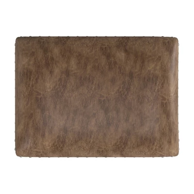 - Soft and supple weathered brown faux leather upholstery features stylish gold nail-head trim details