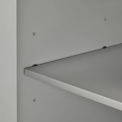 - Adjustable shelf inside each cabinet with a 15lb weight limit per shelf