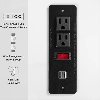 - This standard 3-layer console table comes in the proper height of 31.7″ with elegant black colour and textured touch is an elegant choice no matter behind your sofa backrest as a sofa table or against the wall to serve your decorations and collections. The added 1500 w built-in power outlet with a switch, 2 AC & 2 USB ports together with a 2m long, double-isolated rounded cord facilitates your daily charging and the accommodation of some appliances like speakers and lamps.